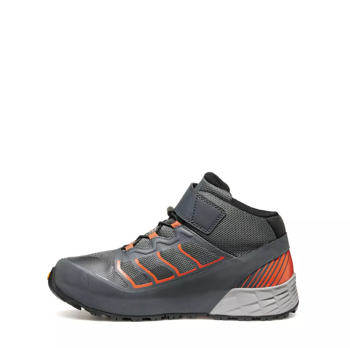 RR MID GTX - Y, вдъхновен от света на трейл бягането, е обувка със средна височина, създадена за детски приключения на открито в студено и дъждовно време. Матови цветове, еластичните връзки и закопчаването с велкро гарантират комфорт и са отличителни характеристики на този модел, подходящ за ежедневна употреба.