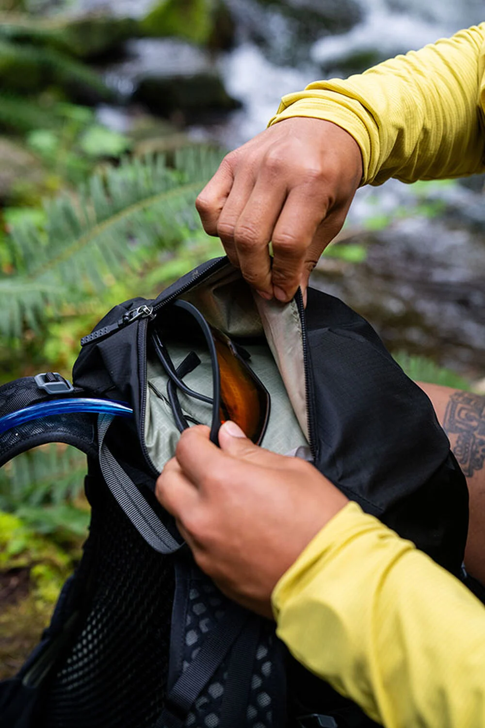 • Отделение за хидратираща система: вътрешно отделение със SpeedClip закачалка, съвместимо с резервоари Gregory Hydro (не е включен).